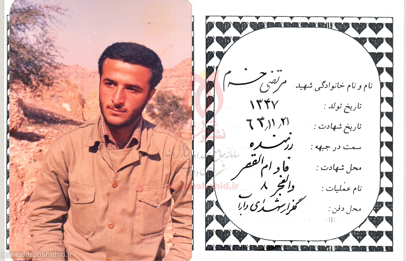 | محل شهادت:اروند رود | محل تولد: فارس-داراب |
