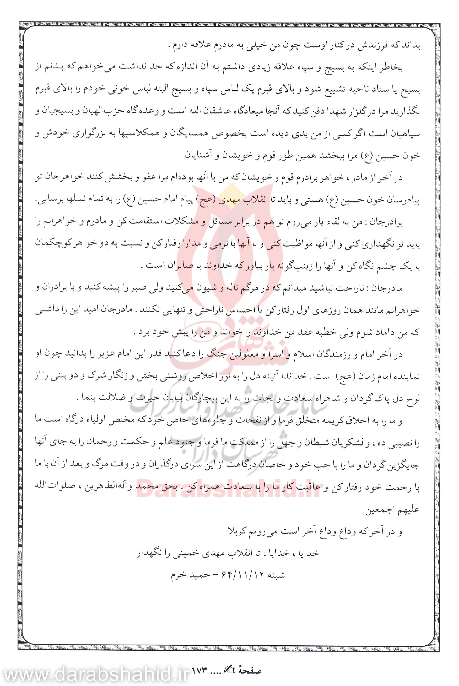 وصیت نامه سرباز امام زمان(عج)، مرتضی خرم