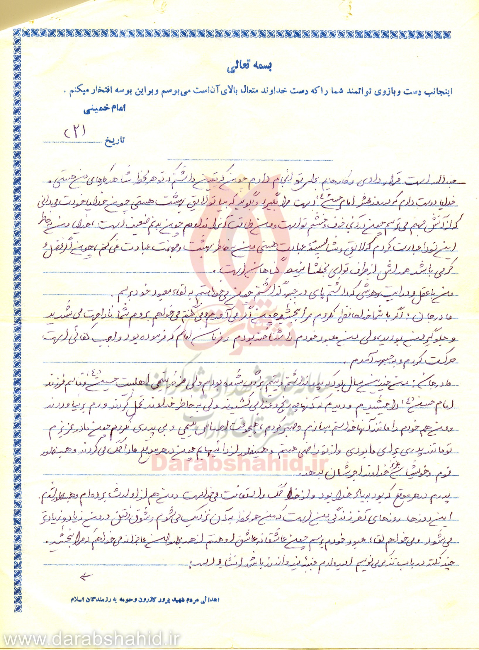 با سلام و درود به یگانه منجی عالم بشریت مهدی موعود(عج) و نایب بر حقش امام امت و شما امت شهید پرور، حزب الله و همیشه در صحنه و شهیدان به خون خفته اسلام از صدر اسلام تاکنون.